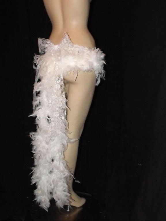 Short feather skirt with trailing feathers lace bow