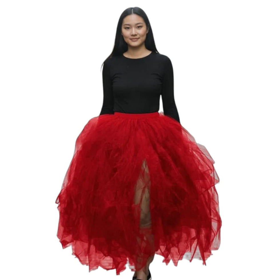 Long Red Tulle skirt Skirt with split sizes 6-28